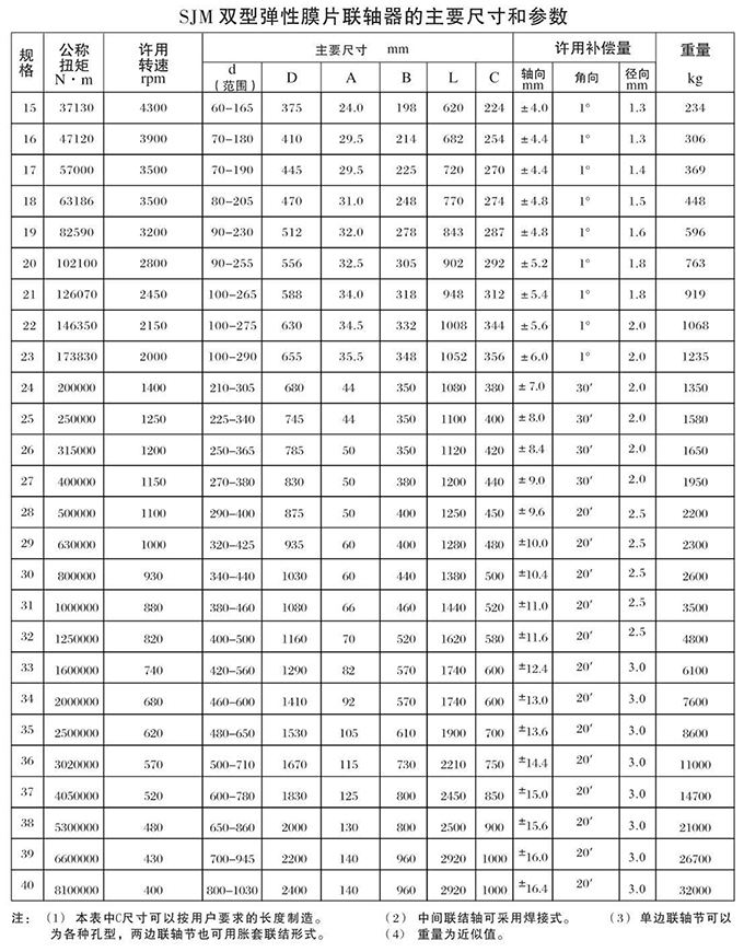 瑞安市寶德隆機械配件有限公司提供SJM型鍵聯結雙型彈性膜片聯軸器具有拆裝方便,快速安裝等特點,廣泛用于連接/固定輪轂孔和零件的軸,例如齒輪,錐齒輪,鏈輪,葉輪,凸輪,皮帶輪和飛輪等軸的聯結固定,咨詢電話:18906872378