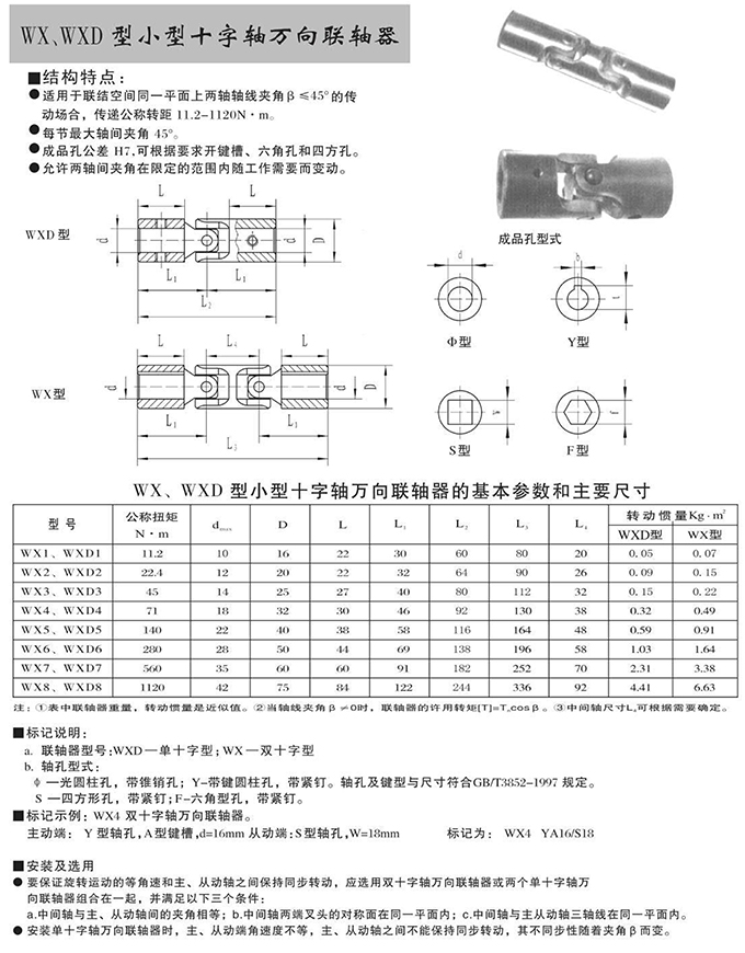 瑞安市寶德隆機械配件有限公司提供WX、WXD型小型十字軸萬向聯軸器具有拆裝方便,快速安裝等特點,廣泛用于連接/固定輪轂孔和零件的軸,例如齒輪,錐齒輪,鏈輪,葉輪,凸輪,皮帶輪和飛輪等軸的聯結固定,咨詢電話:18906872378